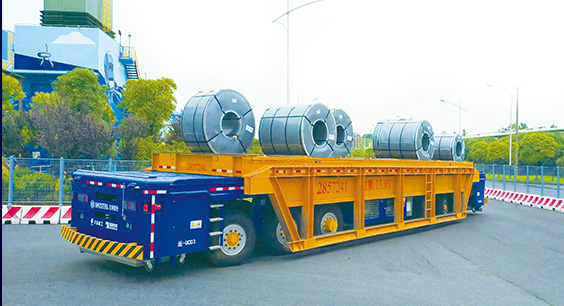 重型AGV是用来载运重型组件的智能运输车辆,具有自主导引运行,自动升降、多种转向模式、避障防撞等功能,产品支持惯性导航、自然导航、激光导航等多种导航方式,油电混动、纯电等动力方式,液压、电力等驱动方式,无人操作、有人遥控等多种控制方式,载重重量最大可达200吨。适应室内外混合开放路面,工作效率高、适应性强、运行平稳、安全性高。主要应用于冶金、制造、港口、仓储、特种行业等。对比普通车辆,运输效率提升35%,节油24%,设备利用率可达98%以上。