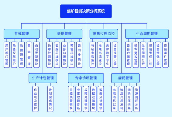 基于大数据并综合多种算法模型,根据生产过程各因素之间的异常关系进行链式分析、偏离分析,智能诊断推焦生产过程中异常原因、故障点,预测性推导主要核心零部件的潜在异常。