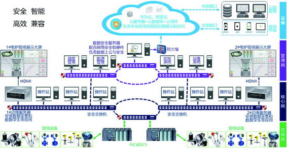 优势:包含控制网、核心网、管理网以及云端四级工厂网络,兼容开放性好,设置软硬件结合的纵深防御措施,安全性好,根据实时参数,按照模型进行仿真,推荐合理的运行参数,结合矿热炉工艺参数、运行参数,计算出电极工作端实际位置 多维度能效评估系统,实时输出过程值综合评分,及时反馈操作建议,多维度的设备健康度模型,预测关键设备故障,诊断故障原因