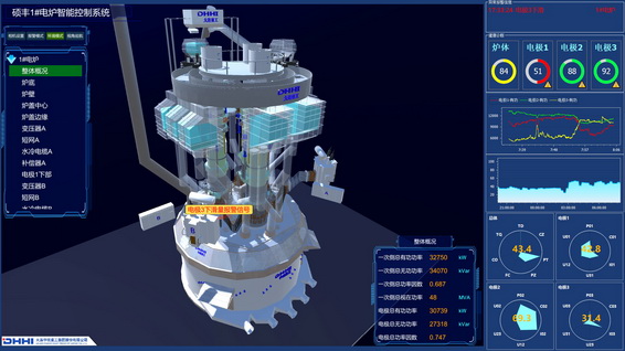 基于先进的物联网思维和大数据分析手段,以完善的仪表检测为基础、矿热炉智能控制模型为核心,包含能效评估系统、故障诊断系统、调度管理系统、生命周期管理系统、智能巡检系统、数字孪生系统和远程运维平台的冶炼工程智能化解决方案,该系统目前已在新太元铬铁冶炼、硕丰铬铁冶炼项目中使用,取得了较好的应用效果。