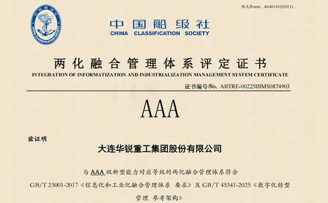 近日,在中国质量(南京)大会上,第五届中国质量奖评选结果正式揭晓,大连华锐重工集团股份有限公司获得第五届“中国质量奖提名奖”。
