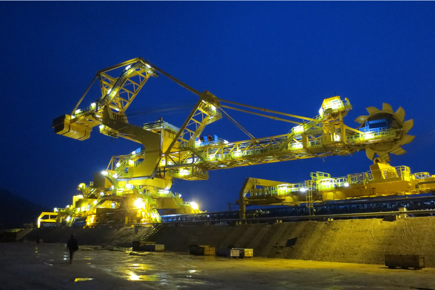 取料机是一种连续、高效的散料装卸机械,广泛应用于港口、冶金、矿山、电力、煤化工等领域,可实现煤炭、矿石等散状物料的取料连续作业。大连重工可研制额定能力100~15000t/h各种型式的取料设备。