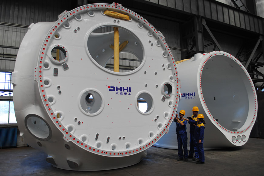 大连重工于2004年开始兆瓦级风力发电设备核心部件产品的研制,先后开发出1.5兆瓦至6兆瓦增速机、偏航变桨驱动器、风电球铁铸件等15种核心部件,并实现了批量化生产。